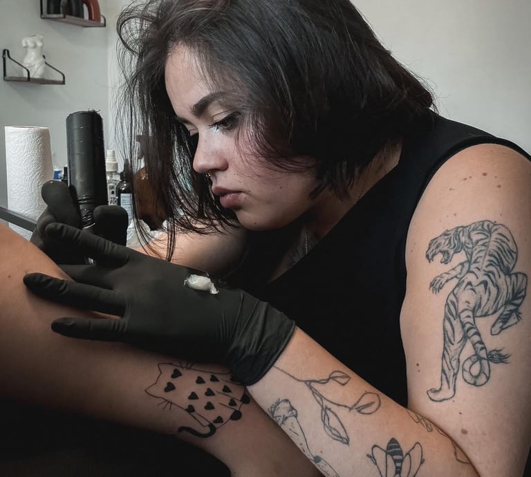 Passionnée par le dessin, je transforme vos idées en œuvres indélébiles. Mon approche mêle écoute bienveillante et rigueur hygiénique, pour que votre tatouage soit une expérience aussi belle que le résultat.